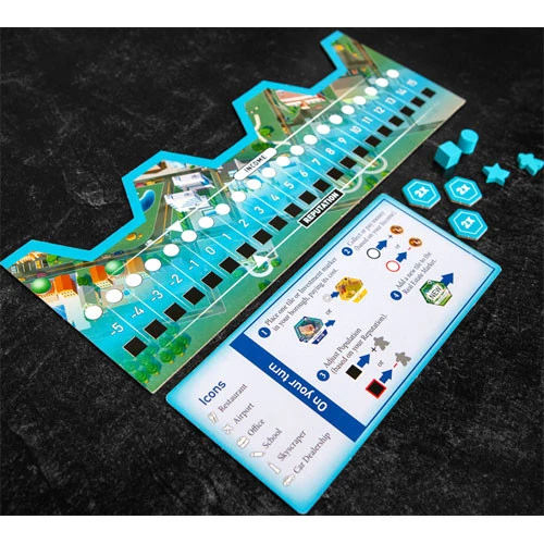 This collection includes dozens of new building tiles, borders, goals, and new mechanics, such as the turn-order-altering star track, borough-enhancing borders, bonuses, challenges, ability to have 5 players, and more. The new buildings offer new categories as well, such as the high-risk, high-reward Nightlife tiles that provide a huge benefit while also taking a toll on your growing metropolis. You’ll never run out of unique customization options that will make each game of Suburbia unlike any other!