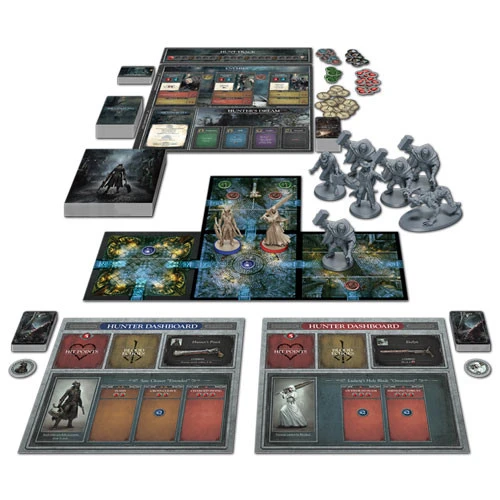 Bloodborne: The Board Game is a dark and challenging cooperative game where 1 to 4 Hunters must explore the city of Yharnam, playing through 4 unique campaigns and fighting their way through beasts and monsters to survive the night. Durig the course of a Campaign, Hunters will uncover a unique story as they grow in skill and power, overcoming the multitude of foes that stand in their way.