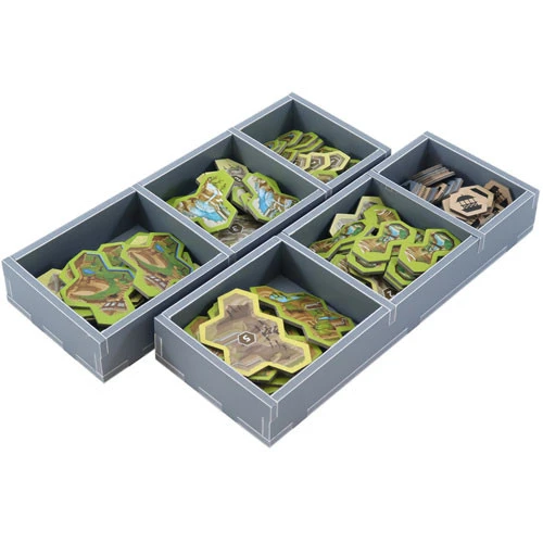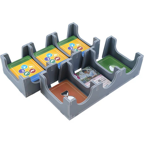 Insert compatible with Ark Nova. The design provides both efficient storage and improved game play. Many of the trays can be utilized during the game, and they greatly aid set-up and clear-away times.