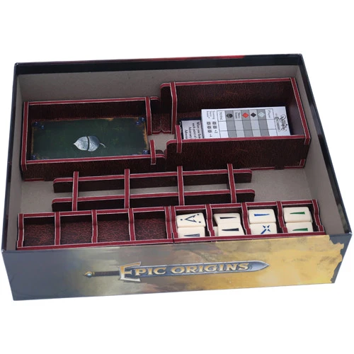The design provides both efficient storage and improved game play. Many of the trays can be utilised during the game, and they greatly aid set-up and clear-away times. The rules act as a lid on top of the trays.