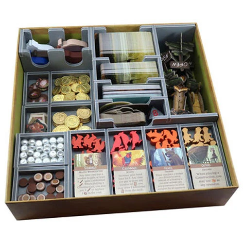 Insert compatible with Everdell including all Collector’s Edition content and the Pearlbrook, Bellfaire and Spirecrest expansions. The design provides both efficient storage and improved game play. Many of the trays can be utilised during the game, and they greatly aid set-up and clear-away times. There is space for all cards to be sleeved.