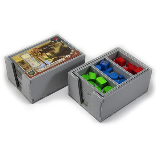 This insert is designed to be compatible with Istanbul, and includes space for the Mocha & Baksheesh, and Letters & Seals expansions. The design provides both efficient storage and improved game play. Many of the trays can be utilised during the game, and they greatly aid set-up and clear-away times. The rules act as a lid on top of the trays. There is space for all cards to be sleeved.