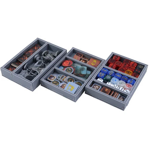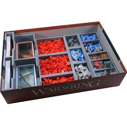 Insert compatible with War of the Ring (2nd Edition), and the Lords of Middle-earth Expansion, and Warriors of Middle-earth Expansion. The design provides both efficient storage and improved game play. Many of the trays can be utilised during the game, and they greatly aid set-up and clear-away times. The board and rule books act as a lid on top of the trays.