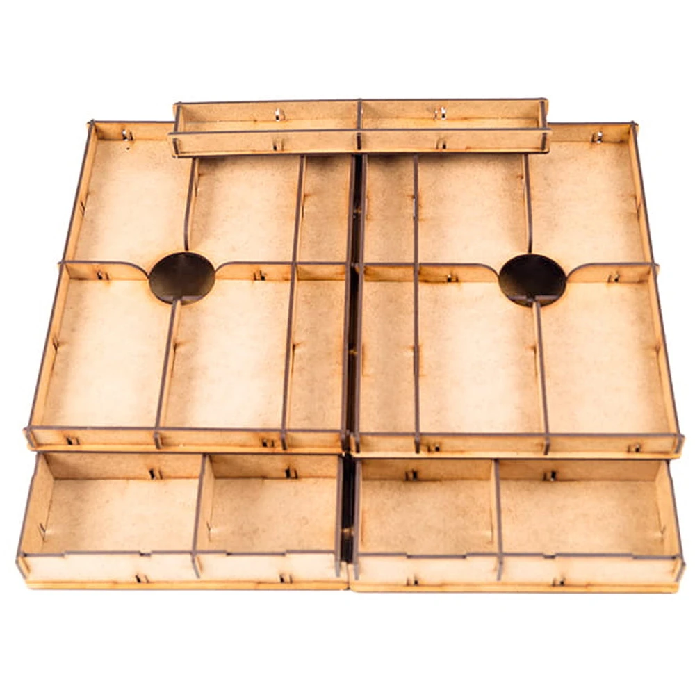 The insert is durable and made of high-quality HDF. To assemble it, there is no glue required. It allows you to hold all components inside the box. You can see the suggested components setup on the pictures.