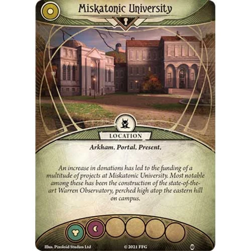 All of the locations in this scenario are labeled Past, Present, or Future, with the exception of Tindalos, which is all three at once. By traveling between Tindalos and various landmarks of Arkham in all three eras, you can manipulate the flow of time to your advantage, gaining extra resources, clues, cards, or other benefits depending on the location and era. By coordinating with your fellow investigators, you can set something up in the past and then have a friend immediately reap the benefits in the future, or vice versa. With many twists, turns, and time paradoxes, Machinations Through Time will keep even the most experienced investigators on their toes. Will you solve the mystery of who is targeting these scientists throughout history? Or will you become lost in the time stream?