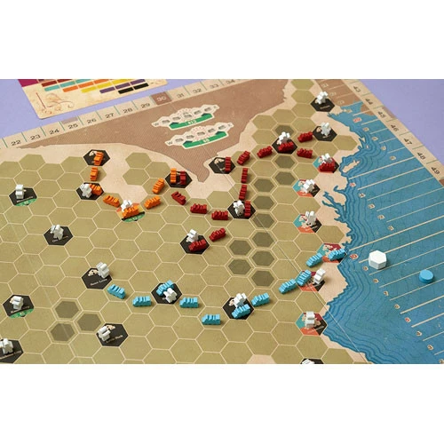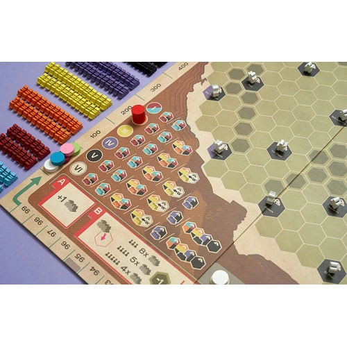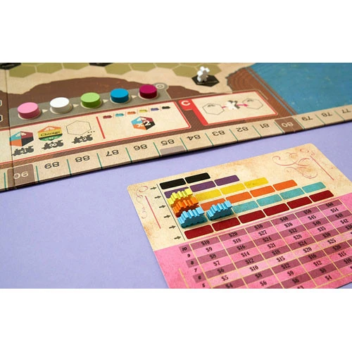 In Ride the Rails, you will invest in railroad companies, build railway track across America, and deliver passengers to as many cities as possible. Each round, a new Railroad company is introduced to the game, and each Railroad company has its own special placement rules! Deliver passengers to as many cities as possible to earn the most points. Be cautious in your travels, as shareholders of Railroads that you use will also earn points!