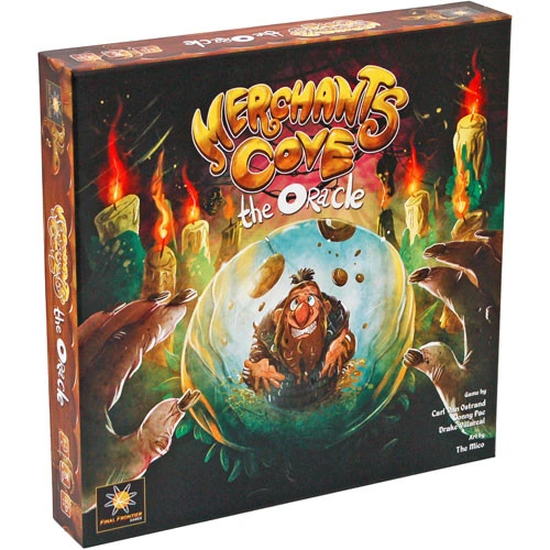 The Oracle is a new merchant you can play as. It is centered around a roll & write style game, with a pen, dry-erase board, and custom dice tray. Each turn you throw a handful of runes (a coin, bone, voodoo meeple, and dice) into a divided dish, then you record the results on your board in various ways to perform actions – and predict the future!