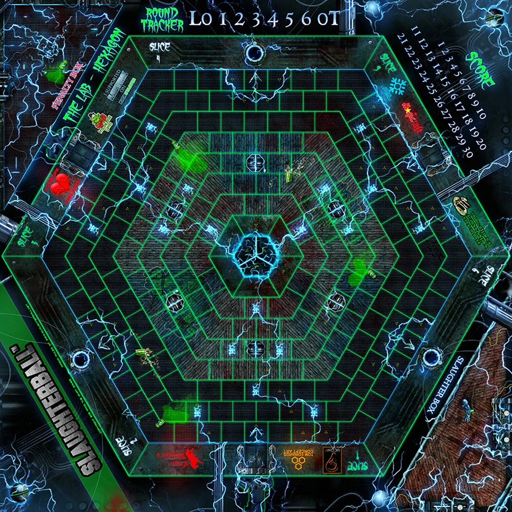 A gothic arena broods at the heart of the Wallachian Metroplex: The Lab. Massive generators shoot lightning into the gloomy sky and into the arena itself! Random bolts of electrical doom arc across the pits, posing dreadful hazards that can stagger even the mighty butchers.