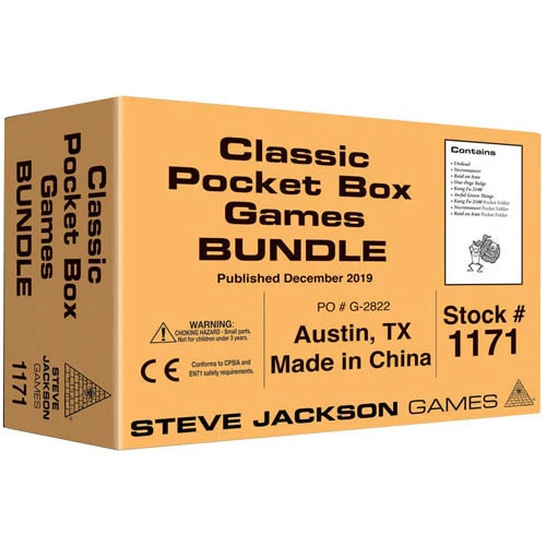 The Classic Games Pocket Box bundle includes the forgotten Pocket Box games of the eighties. Undead. Necromancer. One-Page Bulge. Raid on Iran. Kung Fu 2100. Games that have been out-of-print and unavailable for decades are available once again, all in retro-inspired packaging and in as near-exact reprints of the originals as we could manage.