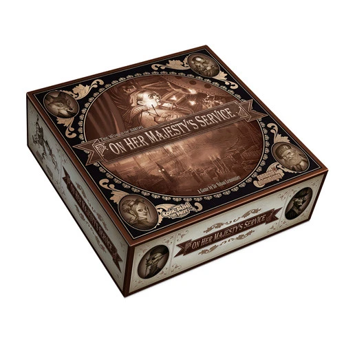 On Her Majesty’s Service is a strategical board game set in The World of SMOG’s fantastic steampunk universe. Players must guide their Gentlemen through the shifting board that makes up the Shadow Market. Buying and selling the different kinds of Ethers will allow them to not only gather enough coin to acquire the precious Artefacts demanded by the queen, but also to activate powerful special actions.