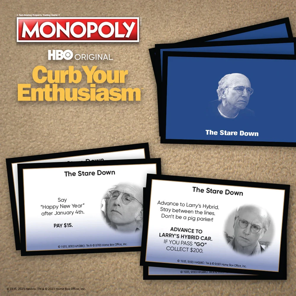Larry David has it all – so why does he seem intent on making a mess of his life? Relive his various predicaments at home, at work, and around town with Monopoly: Curb Your Enthusiasm, inspired by the acclaimed vérité-style HBO comedy series!