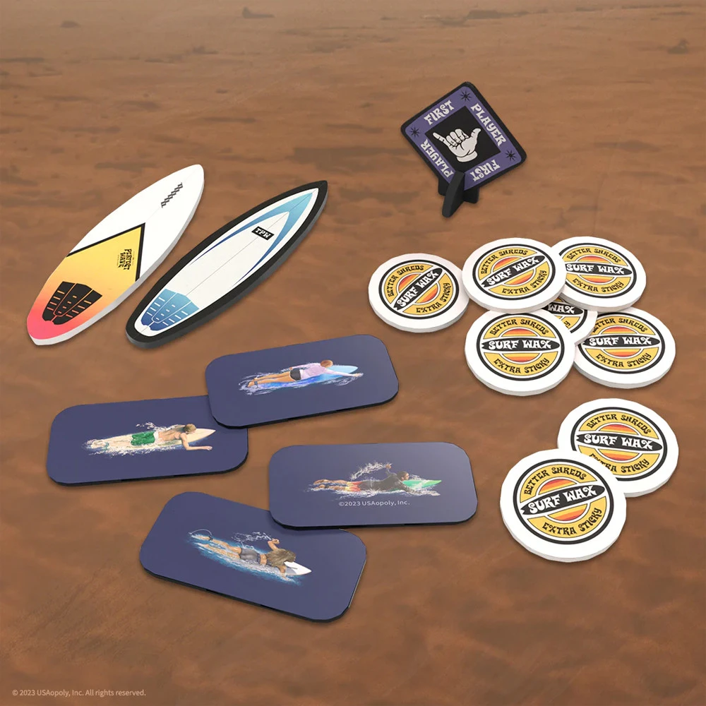 And here’s the twist . . . the more time spent creating your wave, the less you’ll be able to paddle out . . . and the more you paddle out, the trickier it becomes to create your wave! You’ll need careful planning and expert timing to balance these goals and win the game!